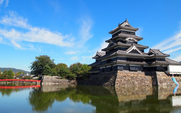 文禄(1593~1594)時代に建てられた五重六階の天守閣は、城の中では日本最古です。 幾たびかの存続を、市民の情熱により乗り越え、四百余年の風雪に耐え、戦国時代そのままの天守が保存されています。 明治の大改修後の昭和11年、国宝に指定されました。(昭和27年再指定)別名深志城とも呼ばれています。 姫路城、彦根城、犬山城と共に四つの国宝城郭の一つです。