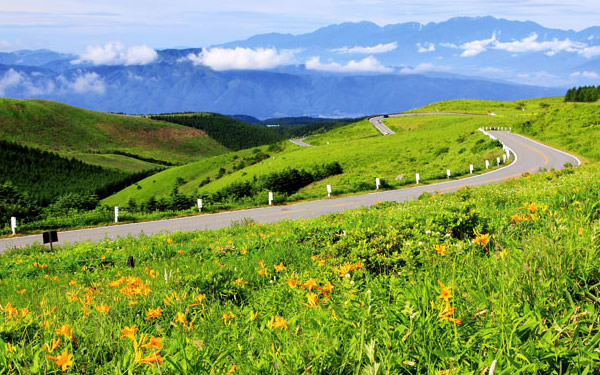 茅野市街から美ヶ原まで、全長75kmのビーナスライン。 眺望の素晴らしい観光道路です。 蓼科高原や蓼科牧場、女神湖、白樺湖、車山高原、霧ケ峰、八島ヶ原湿原と人気のリゾートを結びます。